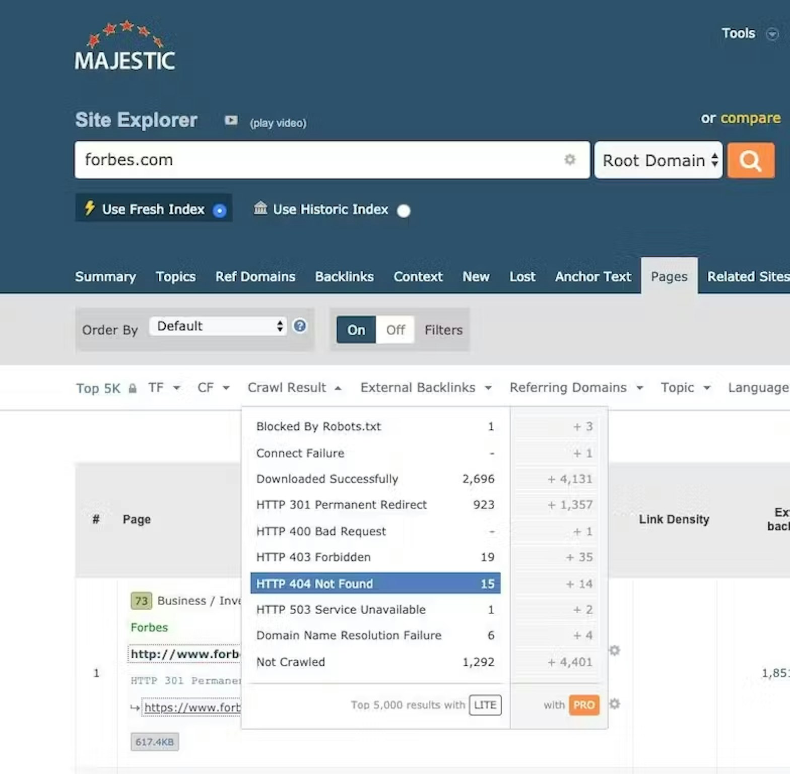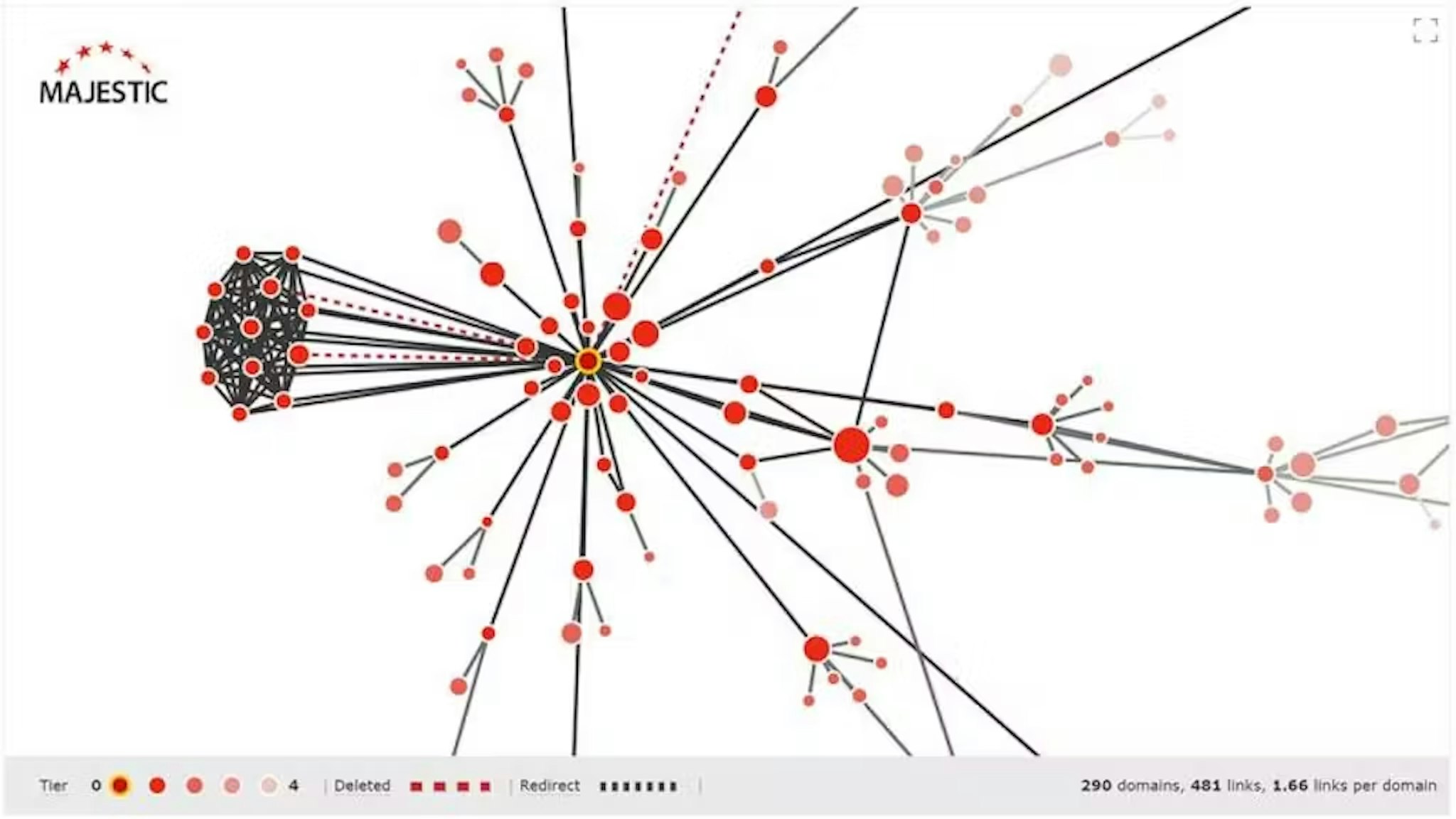 While the raw number of links to a website can give you an indication of how popular it is, it is always worth looking at the ratio of links vs links from unique domains. This will quickly tell you if the backlink profile is made up of many unique mentions or just lots of sitewide type links.