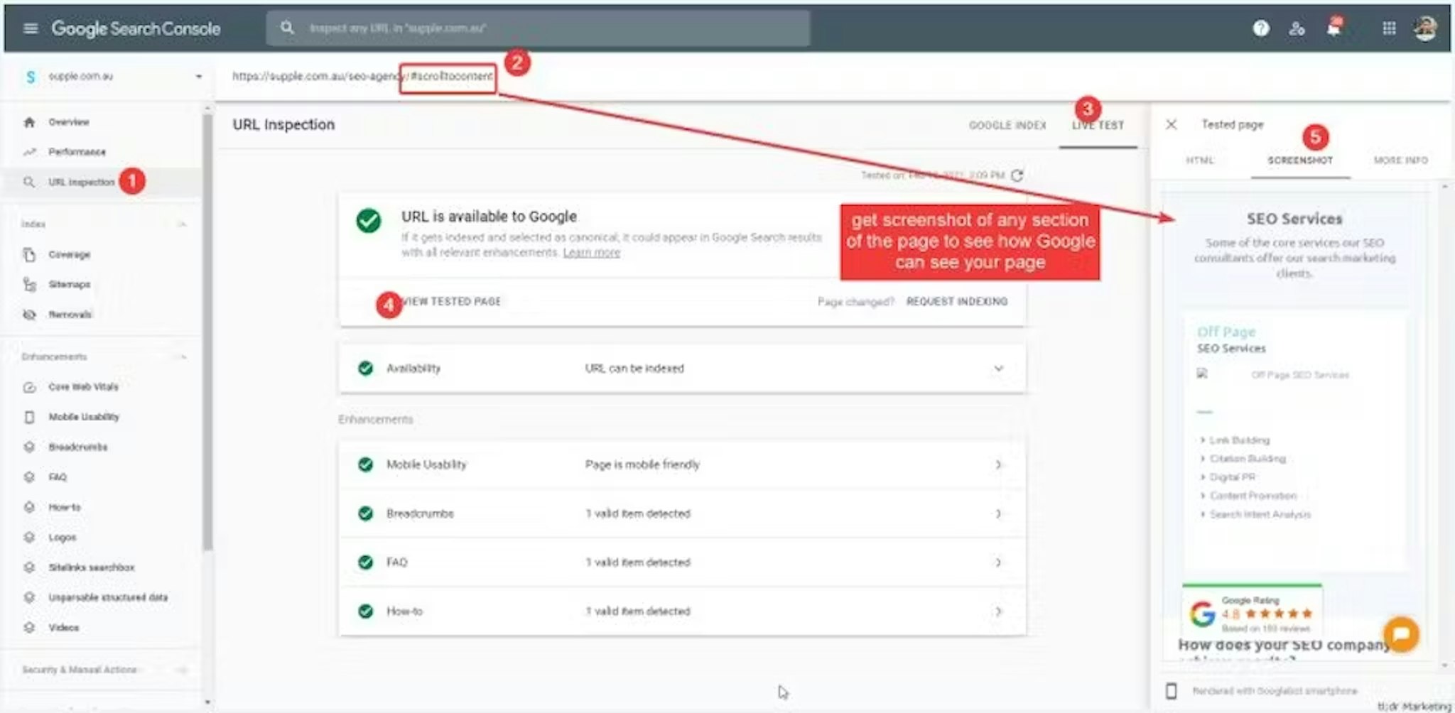 It's possible to get Google Search Console to give render previews of specific parts of your page using regular jump links. Super helpful tip brought to my attention by Saijo George from the tl;dr marketing newsletter.