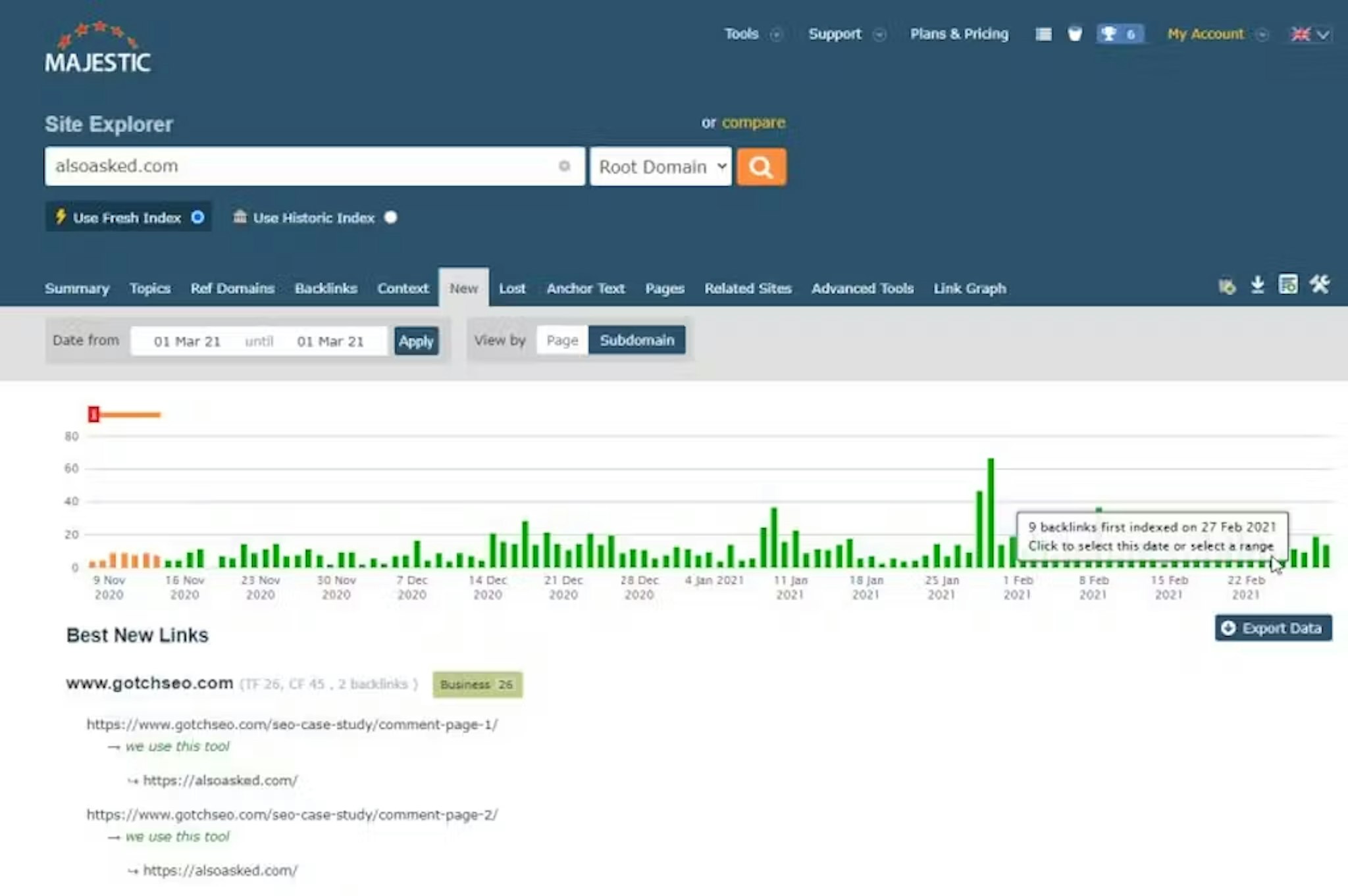 You can find what tactics your competitors or their SEO agency using right now by looking at "new" links. Most backlink tools will have a newly discovered backlinks filter. I love running this report on Majestic to instantly see if a client's competitors had any spikes of recent attention and what they are working on with content and links.