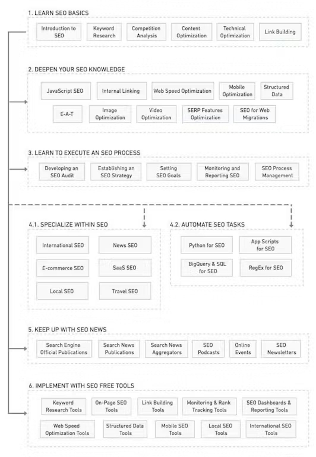 If you're trying to get your internal team up to speed with SEO training but not sure where to start mapping out requirements, Aleyda Solís put together this amazing resource that maps out the different areas of SEO and provides links to learn more.