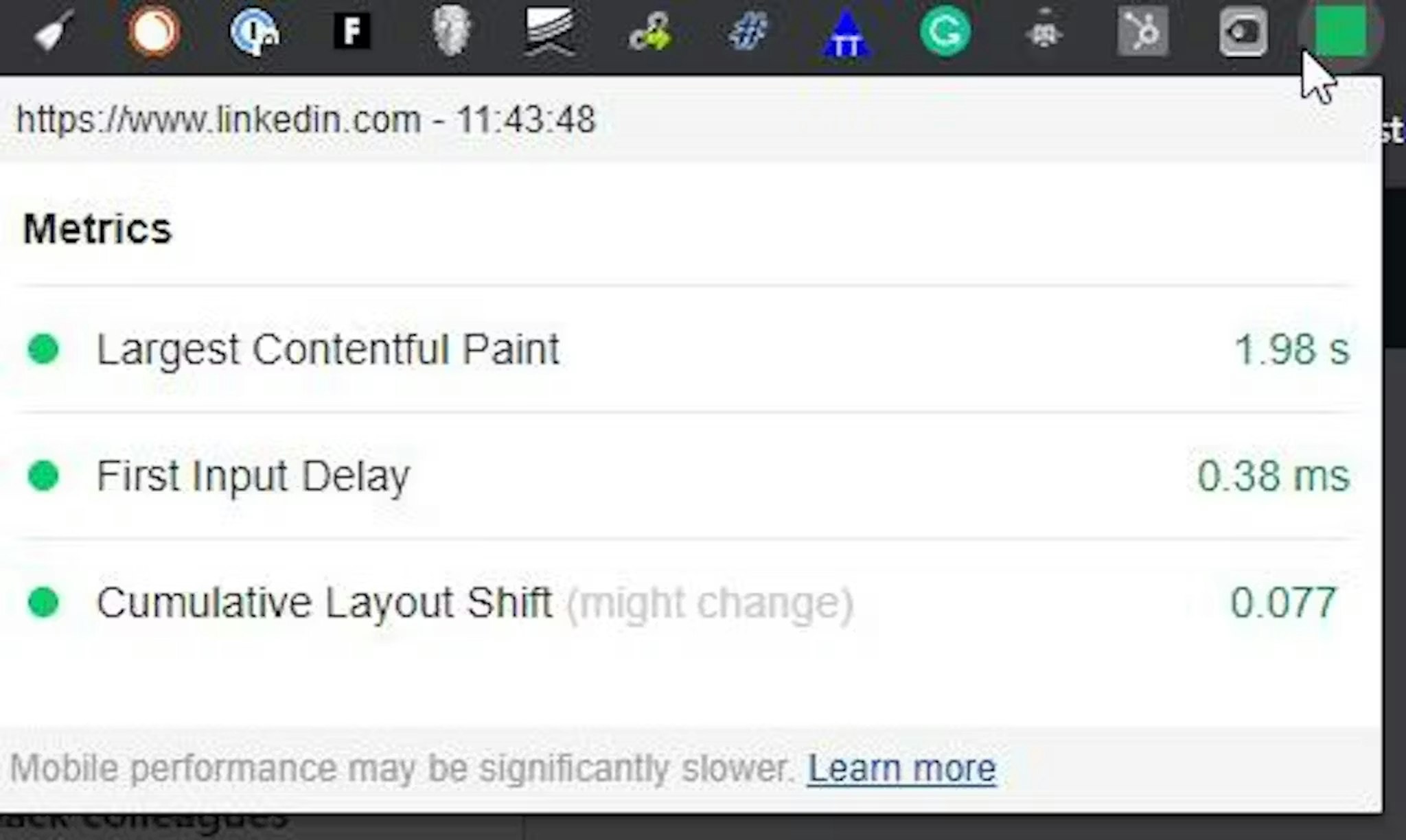 This week, I saw a company that had been told by an agency their site was slow. It really wasn't (consistent ~3.0s TTI). You can test site speed (and more) yourself using Google's PageSpeed / Lighthouse audit tools. I'll do some tips the next few days about these tools, as they are commonly misused and misinterpreted. Here is Google's PageSpeed Insights. Here is Lighthouse.
