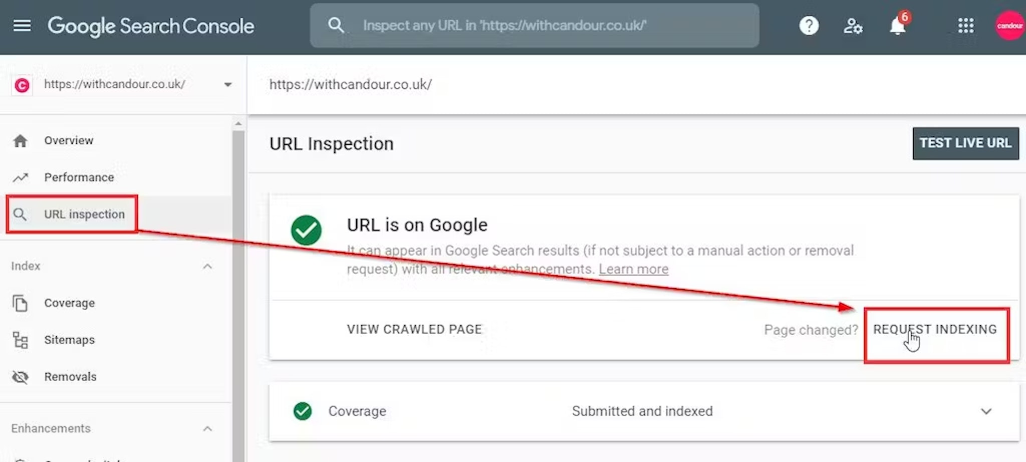 You can use search operators to get additional information about your site from Google. For instance, try a search for: site:yourdomain.com and Google will show you how many results it has indexed* for your domain and will list them roughly in order of importance**. You can also use this to see which specific page Google likes on your site for a specific keyword or keyphrase by conducting the search: site:yourdomain.com keyword It's not 100% accurate, I've actually seen some wild variances. The only way to be sure is to check in Google Search Console, but this method works with competitors or sites you don't have access to their Search Console. * This obviously has no keyword context but may have some other context from your personalisation, search history, device etc. It's more a rough guide for interest and is usually expressive of your internal linking.